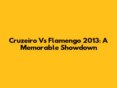 Cruzeiro Vs Flamengo 2013: A Memorable Showdown