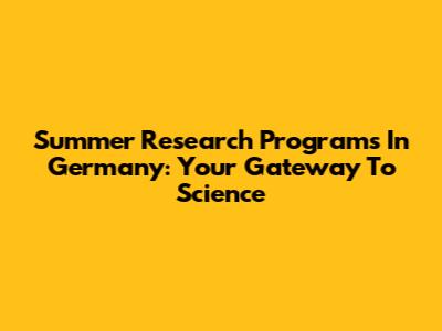 Summer Research Programs In Germany: Your Gateway To Science