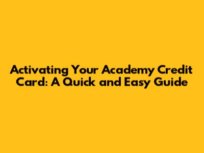 Once your Academy credit card is activated, you're ready to start shopping and earning rewards. Remember to use your card responsibly and pay your bills on time to build your credit and enjoy all the benefits of card membership. Happy shopping! Activating your Academy credit card is a simple process that unlocks a world of benefits and rewards. By following the steps outlined in this guide, you can quickly and easily activate your card and start taking advantage of all its perks. Whether you're a frequent shopper at Academy Sports + Outdoors or simply looking for a credit card with rewards, the Academy credit card is a great option. With its cashback rewards on purchases, exclusive deals, and access to a range of financial benefits, the Academy credit card can help you achieve your financial goals and enhance your shopping experience. So, what are you waiting for? Activate your Academy credit card today and start enjoying all the benefits it has to offer!