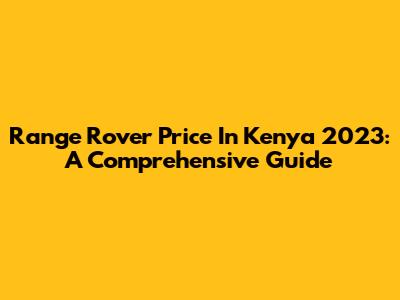 Range Rover Price In Kenya 2023: A Comprehensive Guide