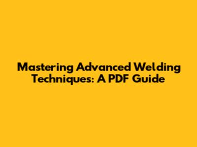 Mastering Advanced Welding Techniques: A PDF Guide
