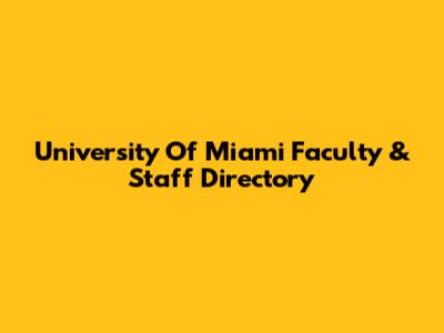 University Of Miami Faculty & Staff Directory