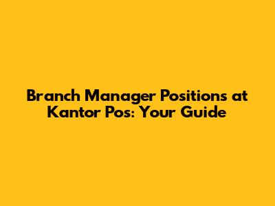 What Does a Kantor Pos Branch Manager Do?