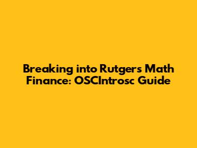 How OSCIntrosc Can Boost Your Rutgers Math Finance Application
