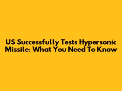 US Successfully Tests Hypersonic Missile: What You Need To Know