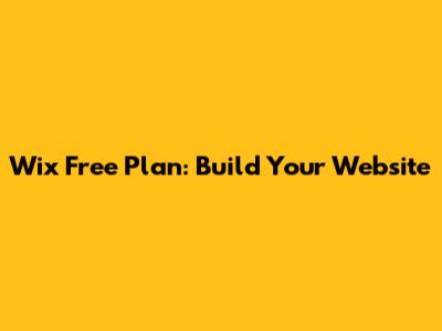 Wix Free Plan: Build Your Website