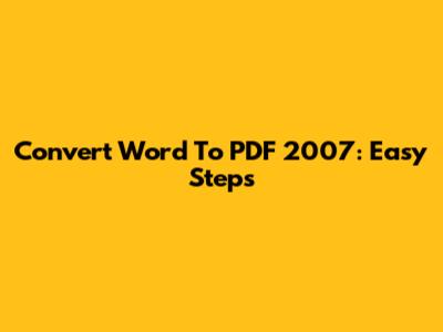 Convert Word To PDF 2007: Easy Steps
