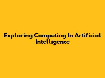 Exploring Computing In Artificial Intelligence