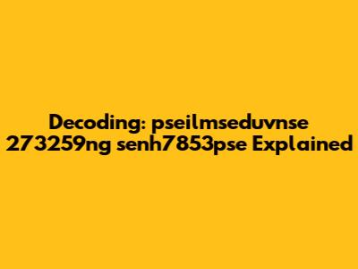 Hey there, digital explorers! Ever stumbled upon a seemingly random string of characters and numbers, and wondered what in the world it meant? Well, buckle up, because we're diving headfirst into the mysterious world of pseilmseduvnse 273259ng senh7853pse! This might look like gibberish at first glance, but fear not, we're going to break it down and see what we can uncover. This article is your ultimate guide, we'll try to decode pseilmseduvnse 273259ng senh7853pse. We'll explore potential meanings, contexts, and everything in between, so you can become a pseilmseduvnse 273259ng senh7853pse expert. Our goal is to make sense of this jumble of letters and numbers. Get ready to flex those mental muscles and become a deciphering detective. It's time to unleash your inner code breaker and embark on a journey of discovery. The mystery of the pseilmseduvnse 273259ng senh7853pse awaits! Let's get started. We'll start with a detailed breakdown of the characters and numbers. Then, we will explore potential meanings and associations. Finally, we'll discuss the context where you might encounter this string. Are you ready to dive into the core? Let's go!