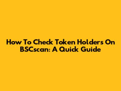 How To Check Token Holders On BSCscan: A Quick Guide