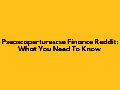 Pseoscaperturescse Finance Reddit: What You Need To Know