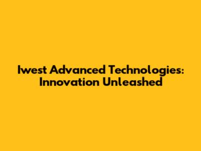 Iwest Advanced Technologies: Innovation Unleashed