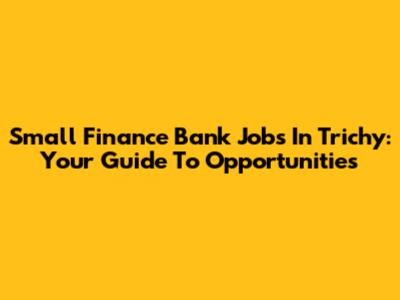 Small Finance Bank Jobs In Trichy: Your Guide To Opportunities