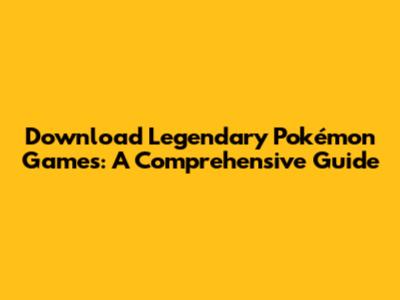 Download Legendary Pokémon Games: A Comprehensive Guide
