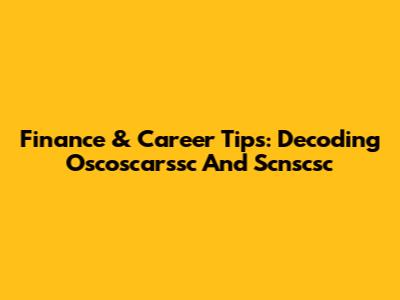 Finance & Career Tips: Decoding 'Oscoscarssc' And 'Scnscsc'