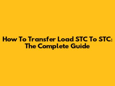 How To Transfer Load STC To STC: The Complete Guide