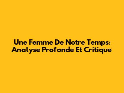 Une Femme De Notre Temps: Analyse Profonde Et Critique