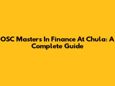 OSC Master's In Finance At Chula: A Complete Guide