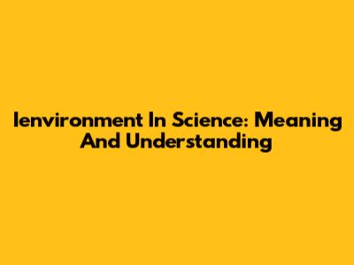 Ienvironment In Science: Meaning And Understanding