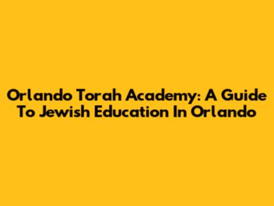 Orlando Torah Academy: A Guide To Jewish Education In Orlando