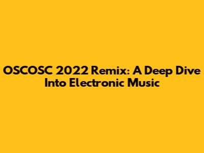 OSCOSC 2022 Remix: A Deep Dive Into Electronic Music