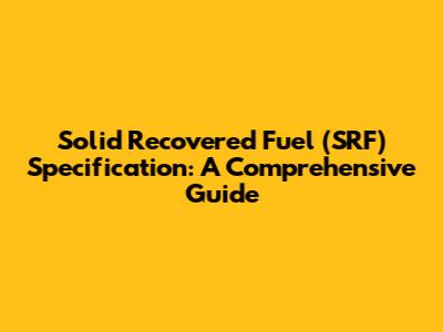 Solid Recovered Fuel (SRF) Specification: A Comprehensive Guide