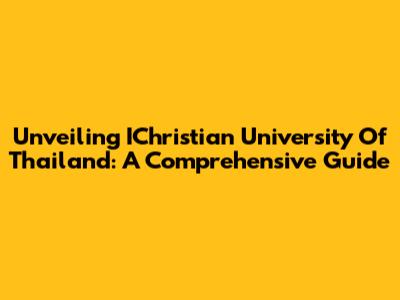Unveiling IChristian University Of Thailand: A Comprehensive Guide