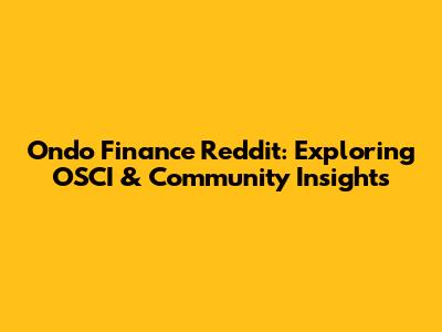Ondo Finance Reddit: Exploring OSCI & Community Insights