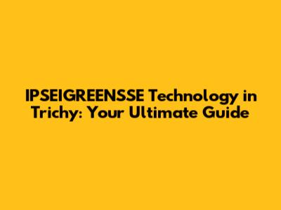 The Future of IPSEIGREENSSE Technology in Trichy