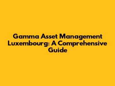 Gamma Asset Management Luxembourg: A Comprehensive Guide