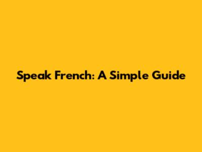 Speak French: A Simple Guide