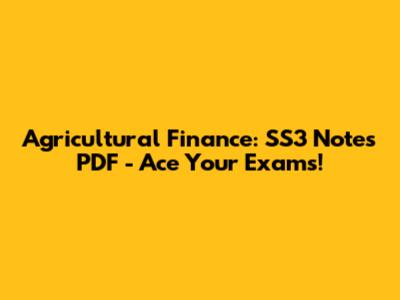 Agricultural Finance: SS3 Notes PDF - Ace Your Exams!