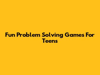 Fun Problem Solving Games For Teens