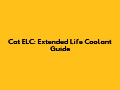Cat ELC: Extended Life Coolant Guide