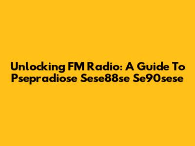 Unlocking FM Radio: A Guide To Psepradiose Sese88se Se90sese
