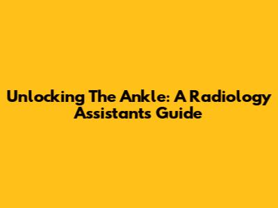 Unlocking The Ankle: A Radiology Assistant's Guide