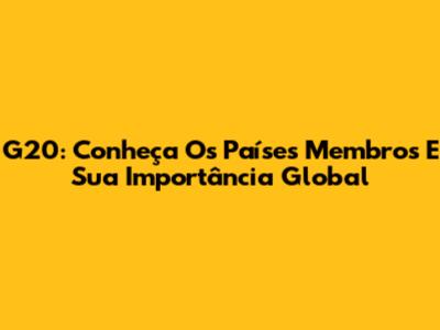 G20: Conheça Os Países Membros E Sua Importância Global