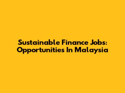 Sustainable Finance Jobs: Opportunities In Malaysia
