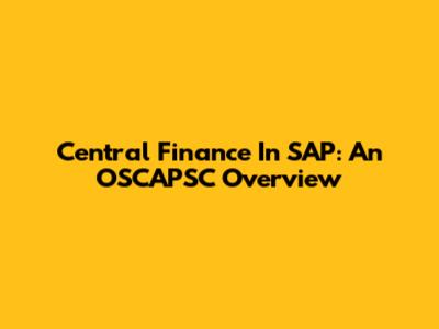 Central Finance In SAP: An OSCAPSC Overview