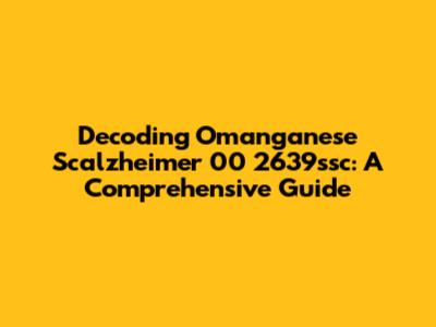Decoding Omanganese Scalzheimer 00 2639ssc: A Comprehensive Guide