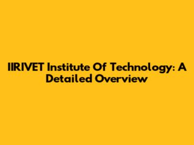IIRIVET Institute Of Technology: A Detailed Overview
