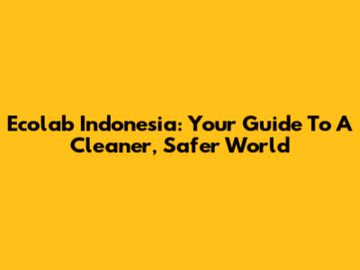 Ecolab Indonesia: Your Guide To A Cleaner, Safer World