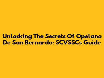 Unlocking The Secrets Of Opelano De San Bernardo: SCVSSC's Guide