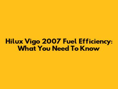 Hilux Vigo 2007 Fuel Efficiency: What You Need To Know