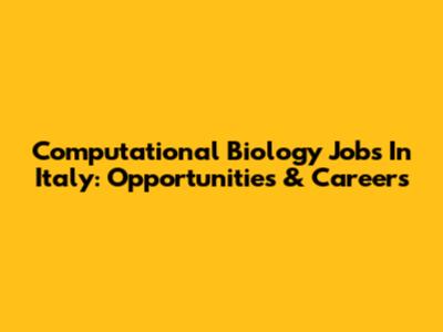Computational Biology Jobs In Italy: Opportunities & Careers