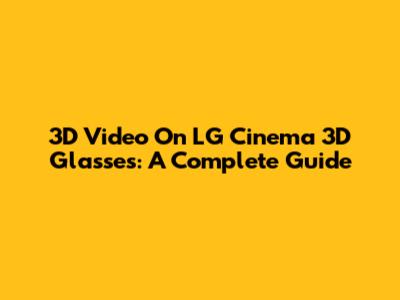 3D Video On LG Cinema 3D Glasses: A Complete Guide
