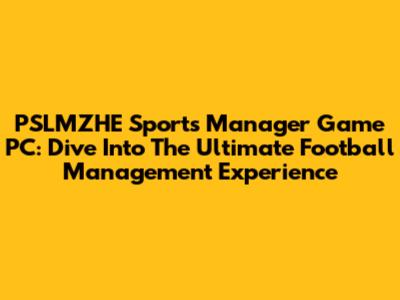 PSLMZHE Sports Manager Game PC: Dive Into The Ultimate Football Management Experience