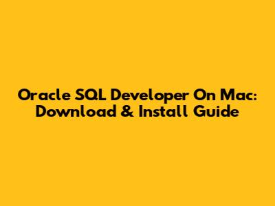 Oracle SQL Developer On Mac: Download & Install Guide