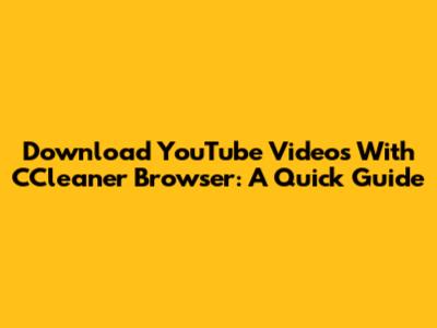 Download YouTube Videos With CCleaner Browser: A Quick Guide