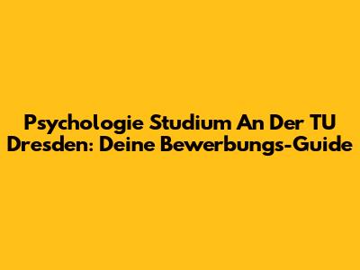 Psychologie Studium An Der TU Dresden: Deine Bewerbungs-Guide